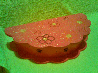 Caixa MDF com 4 divisórias meia lua com textura, tinta relevo e aplicações de flores