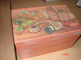 Caixa em MDF para remédios com divisórias para comprimidos removível. Pátina, craquelê e decoupage