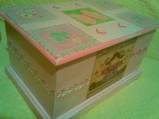 Baú com decoupage e aplicação de pedraria