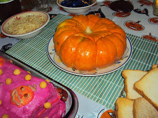 Torta fria. Tentei fazer umas carinhas de abóboras, hehe.