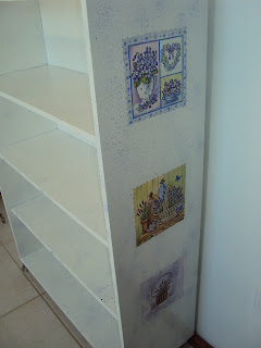 Resumindo, fiz na correria, dei uma lixada rápida, pintei com tinta a óleo branca, não era exatamente o que queria fazer. Se tivesse mais tempo faria uma pátina ....mas gostei do resultado. E ainda fiz uma decoupage com de flores e a técnica da chuva americana.