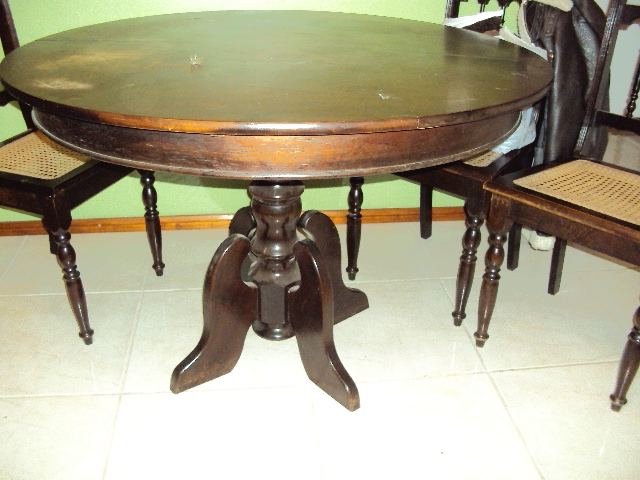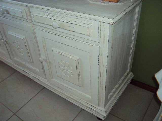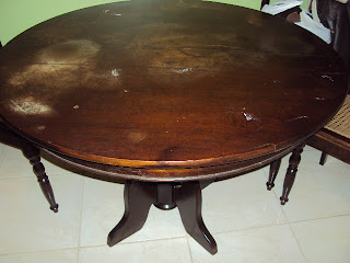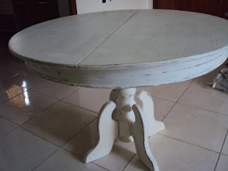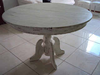 O balcão estava bom, mas a mesa estava toda manchada e com o verniz saindo já e eu queria fazer uma pátina provençal. Mandei lixar em um marceneiro, porque se fosse fazê-lo teria que tirar do meu apto para lixar, senão ia fazer aquela sujeira e seria mais um gasto com frete e esforço já que é no terceiro andar...o pessoal também estofou as cadeiras pra mim, depois foi mais rápido, em dois dias estava prontinha já.
