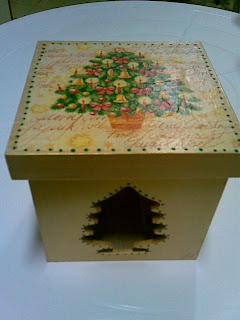 Caixa natalina com xadrez na lateral e decoupage