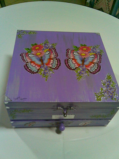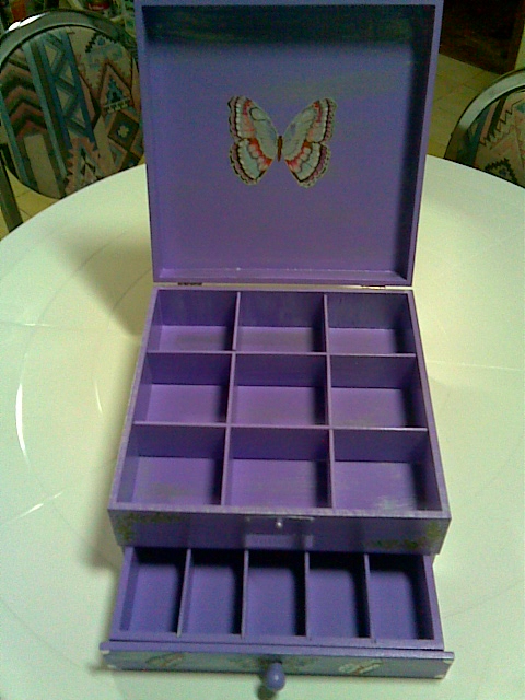 Caixa de jóias com decoupage metalizada e relevo