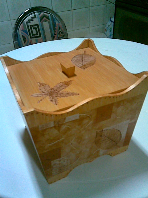 Lixeira com decoupage e relevo em dourado