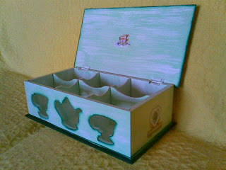 Caixa de chá em MDF com divisórias. Pátina e decoupage