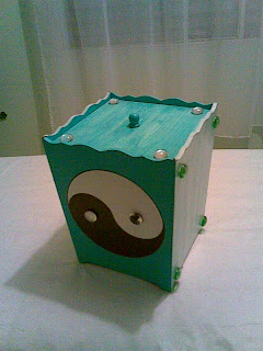 Lixeira com decoupage e aplicações de pedras.