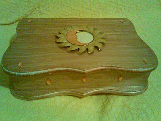Caixa em mdf para jóias com pátina, aplicação de pedraria e e espelho sol/lua em metal