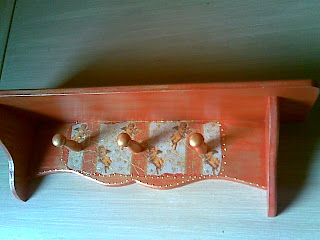 Cabideiro e prateleira com pátina, decoupage e tinta relevo