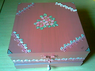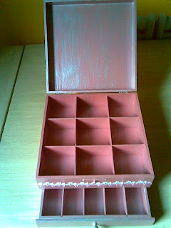 Caixa para jóias com decoupage, pátina e apliques de flores