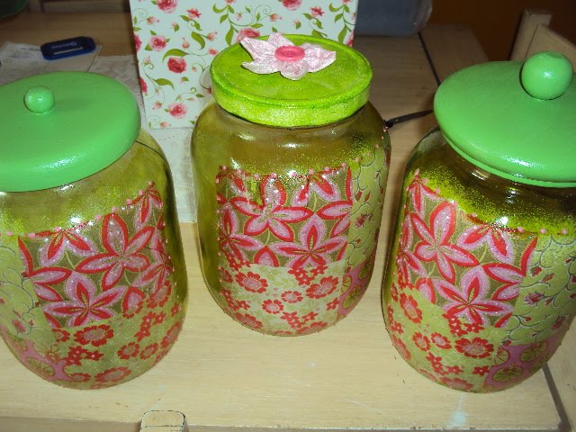 Hoje vim mostrar alguns vidros para manimentos que fiz semana passada para uma cliente, ela já tinha apenas fiz a decoração, por isso as tampas são de tmanhos e materiais diferentes.