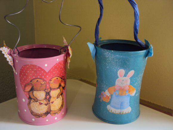 PORTA PAPEL HIGIÊNICO E LATINHAS DECORADAS.